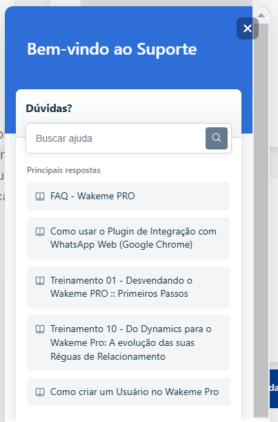 No canto inferior direito do Wakeme PRO, você encontra o botão “Ajuda”. Ele dá acesso direto à Central de Ajuda, onde está disponível uma biblioteca de artigos de conhecimento com respostas para as dúvidas mais frequentes sobre a plataforma.