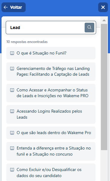 No campo de busca, insira palavras-chave relacionadas ao tema desejado (por exemplo: Lead) e clique na lupa.