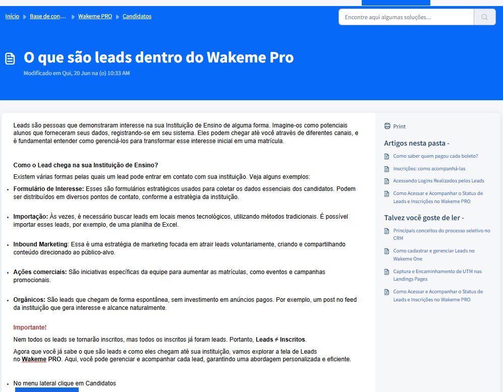 Precisa de ajuda ou tem dúvidas? O Wakeme PRO oferece diversos recursos para apoiar você no dia a dia. Por meio da Central de Ajuda e do Portal de Atendimento da CRM Educacional, você pode encontrar respostas rápidas, acessar materiais informativos e abrir ocorrências para suporte técnico sempre que necessário.