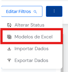 Quando o preenchimento estiver completo, no mesmo menu, clique nos três pontos e em Importar Dados.