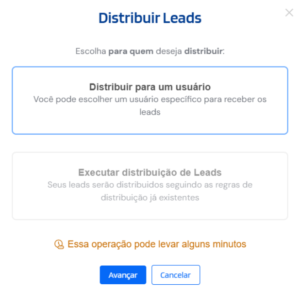 Se a sua escolha foi “Executar distribuição de Leads”, não terá nenhum passo adicional, basta clicar em avançar e ele já será executado em segundo plano.