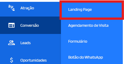 - Em seguida, clique em Landing Page.