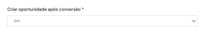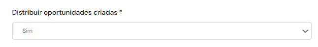 Depois de marcar "Sim" na opção “Criar oportunidade após conversão” da Landing Page, você notará que o formulário exibirá também o campo “Distribuir Oportunidades Criadas”.