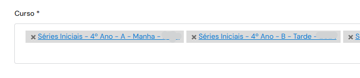 O campo Curso (Ofertas) será exibido como um menu suspenso (Dropdown), permitindo inserir quais ofertas serão apresentadas.