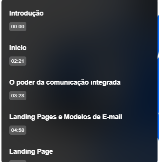 - Para facilitar o acesso rápido aos tópicos específicos do treinamento, clique em Capítulos.