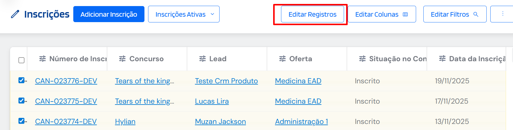 Selecione os registros que serão alterados. Você pode marcar quantos quiser.
