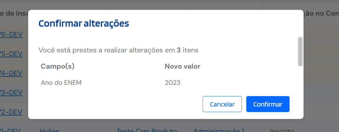 Caso algum erro seja apresentado, será possível revisar as informações e realizar os ajustes necessários antes de executar uma nova edição em massa.