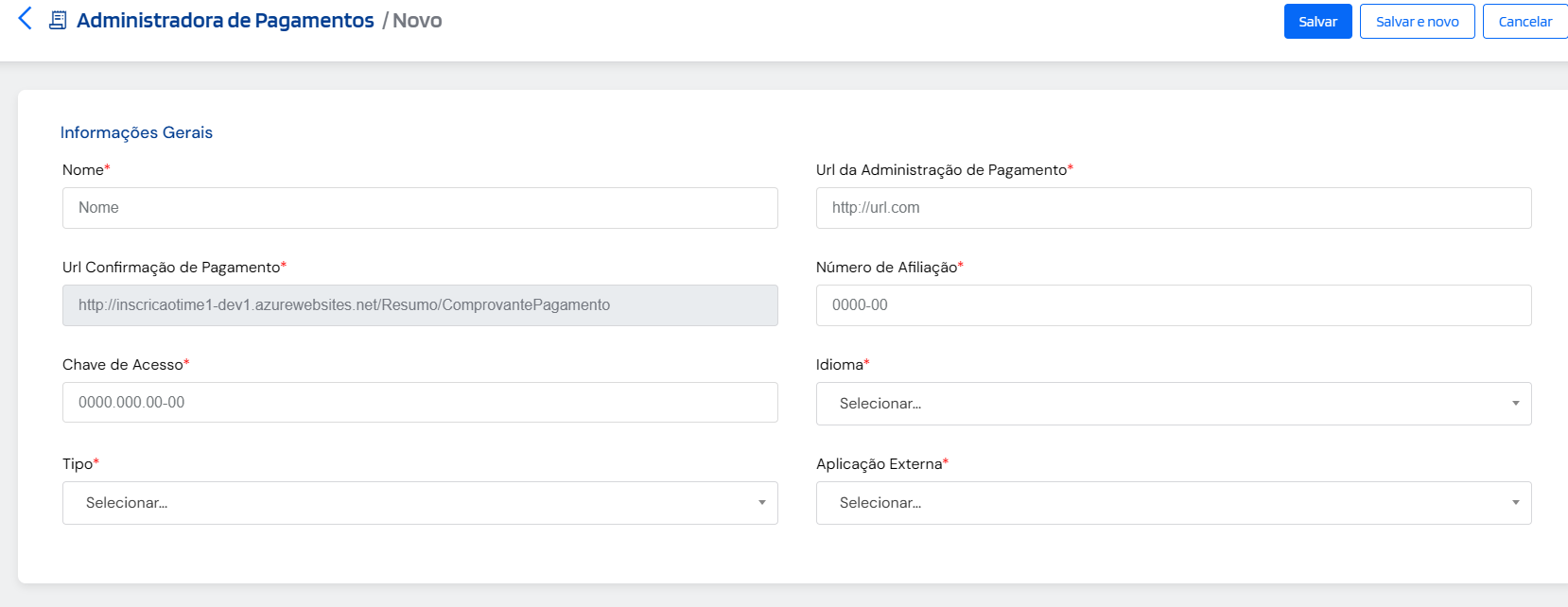 Pronto! A administradora estará configurada para uso no sistema.